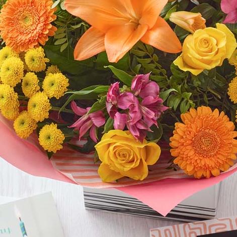 Each and every hand-tied in our Bright Birthday Gift Set is one-of-a-kind, created by an artisan florist using the freshest stems available on the day so, whilst your bouquet will look different to the one pictured, it’ll still be just as lovely (plus it arrives accompanied with a hand-written gift card and box of delectable chocs – what’s not to love?).