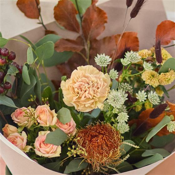 Small but perfectly formed, this trending autumn gift box will feature gorgeous blooms, foliage and dried flowers in muted colours like terracotta or silvery green.