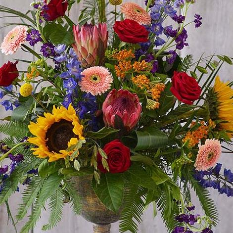 Let our florist's choose from a palette of bright shades to create your service arrangement.