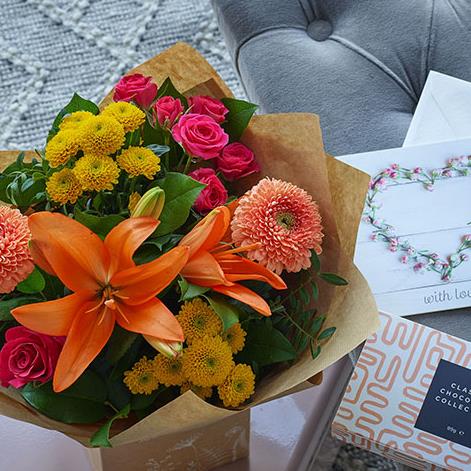 Please note that due to the seasonal availability of flowers it may be necessary to vary individual stems from those shown. Our skilled team may substitute flowers for one similar in style, quality and value. Where our designs include a sundry item like a vase or basket it may not always be possible to include the exact item as displayed. If such an occasion arises we will make every effort to replace the item with a suitable alternative.