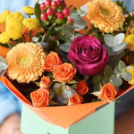 Small but perfectly formed, this classic autumn gift box will feature gorgeous blooms in bright vibrant shades like cerise and sunshine yellow.