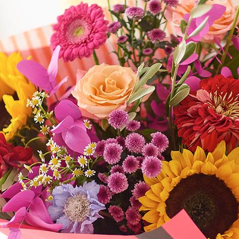 The colours of a glowing summer sunset transformed into a gorgeous bouquet.