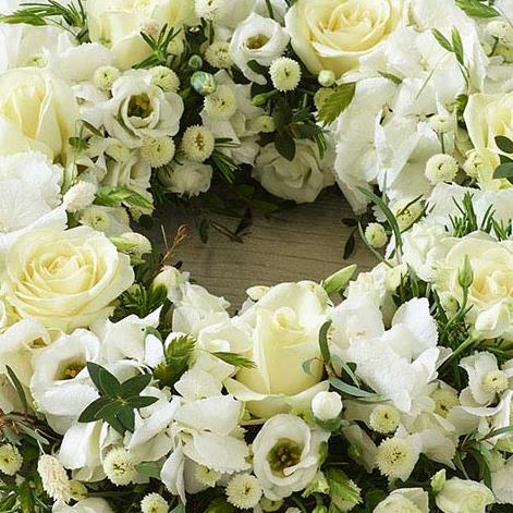 A profusion of white blooms, this elegant wreath features the finest hydrangeas, fragrant rosemary and dried lagarus 'bunny tails'.
